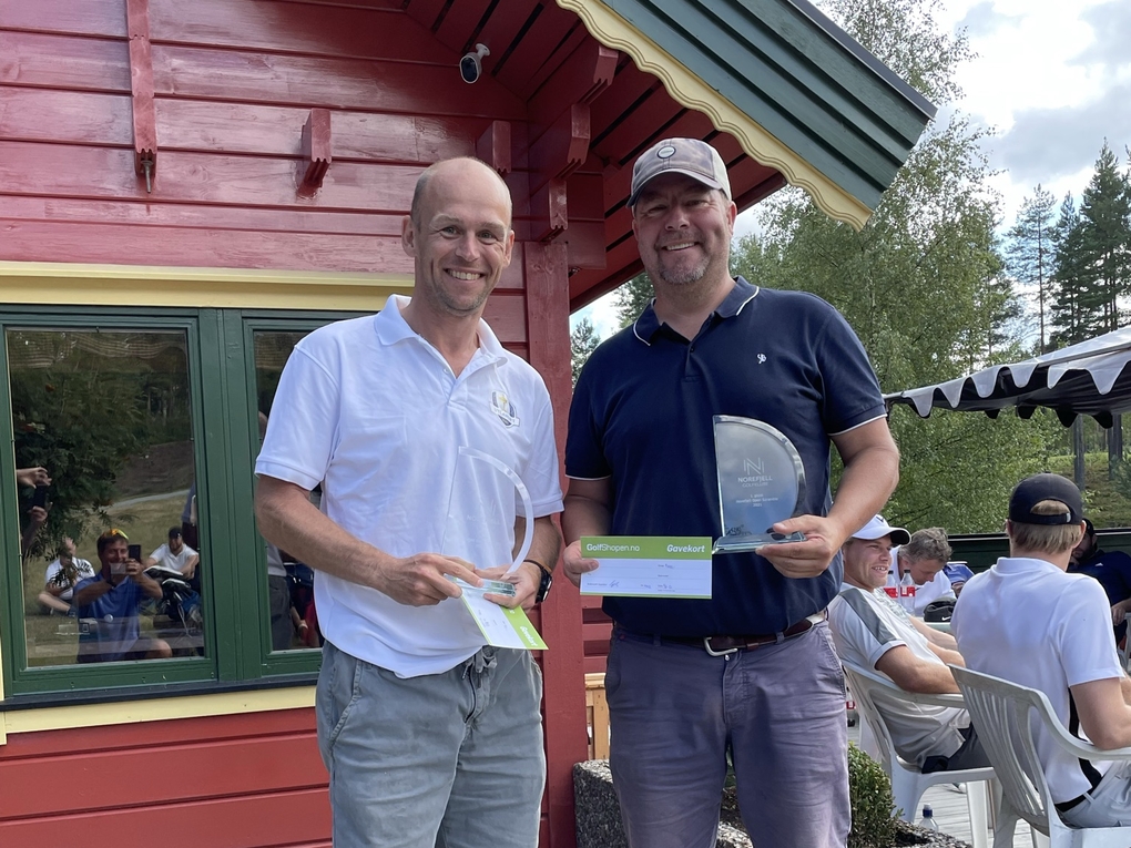 Det er vel ingen tvil om at Scramble er en turneringsform som mange liker, for på søndagen var det hele 80 spillere som var påmeldt og alle møtte opp. Det var spennende lenge, men det var ett lag som skilte seg ut og har hatt en svært god dag. Rikard Wærø og Stephan Hamberg klinet til med en 67 runde, og fikk netto 61 slag! 2. plassen gikk til Vidar Esperum og Christoffer Hauge, også med brutto 67 slag, men med noe lavere handicap ble netto-scoren 64. 3. plassen gikk til Jostein Kjernaas og Amund Bjøre, også med 67 slag og likt handicap som 2. plassen, men blir dømt bak Vidar og Christoffer grunnet dårligere score på hull 18... så her gjelder det å aldri gi seg.
